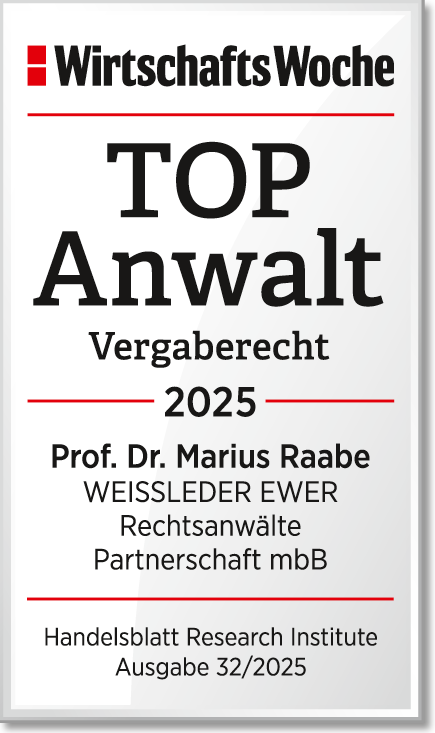 Prof. Dr. Marius Raabe ist Fachanwalt für Vergaberecht – er wurde dies 2016 als erster in Schleswig-Holstein – und Fachanwalt für Verwaltungsrecht und damit einer der öffentlich-rechtlich ausgerichteten Partner. Er ist vor allem im öffentlichen Wirtschaftsrecht an den Nahtstellen der Zusammenarbeit zwischen der öffentlichen Hand und dem privaten Sektor tätig, einschließlich der Gestaltung entsprechender Verträge. Er verantwortet in der Partnerschaft vor allem das Vergaberecht sowie das Europarecht im Bereich des EU-Beihilfenrechts, betreut aber auch das Energiewirtschaftsrecht. Seine Tätigkeiten umspannen zudem das öffentliche Baurecht und Fachplanungsrecht sowie nicht zuletzt vor seinem akademischen Hintergrund das Verfassungsrecht. Prof. Dr. Marius Raabe lehrt als Honorarprofessor an der Christian-Albrechts-Universität Kiel und ist als Referent für Aus- und Fortbildungsveranstaltungen sehr aktiv. Seit 2018 wurde er bisher in jedem Jahr von der Zeitschrift WirtschaftsWoche persönlich als „TOP Anwalt“ für das Gebiet Vergaberecht ausgezeichnet.